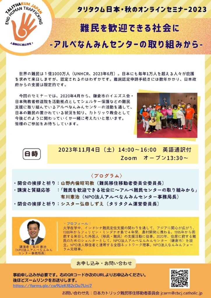 オンラインセミナー:「難民を歓迎できる社会に~アルぺなんみんセンターの取り組みから」2023年11月